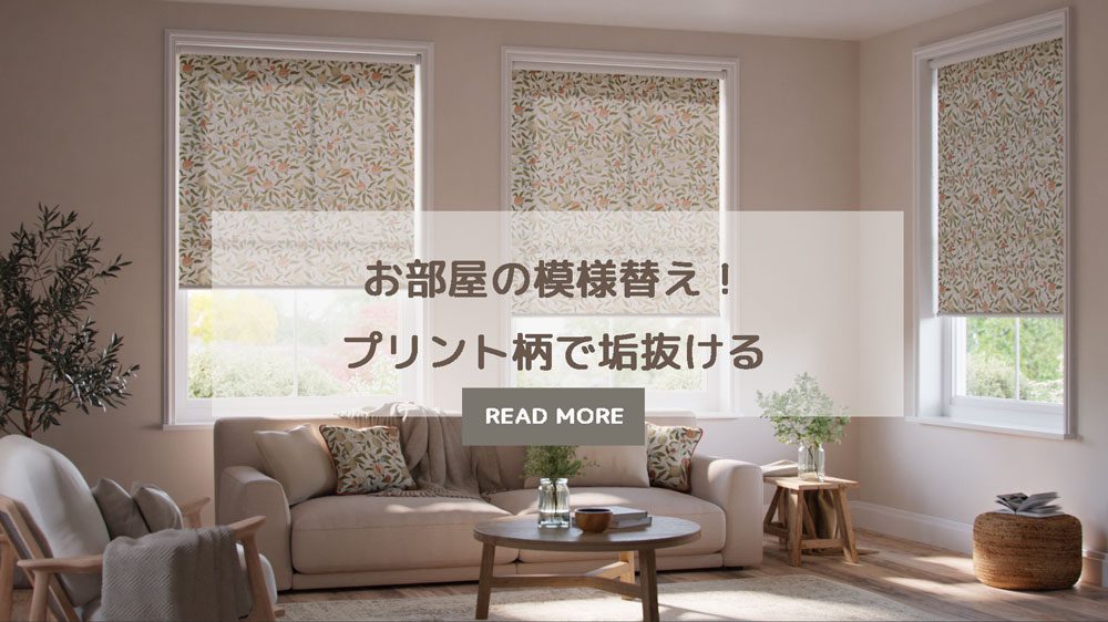 「お部屋も自分らしく変えてみたい」と思う方におすすめなのが、美しい柄物のロールスクリーンやローマンシェード。さまざまなデザインと色合いが空間に表情を与え、たったひとつのアイテムでお部屋の印象を一新してくれます。