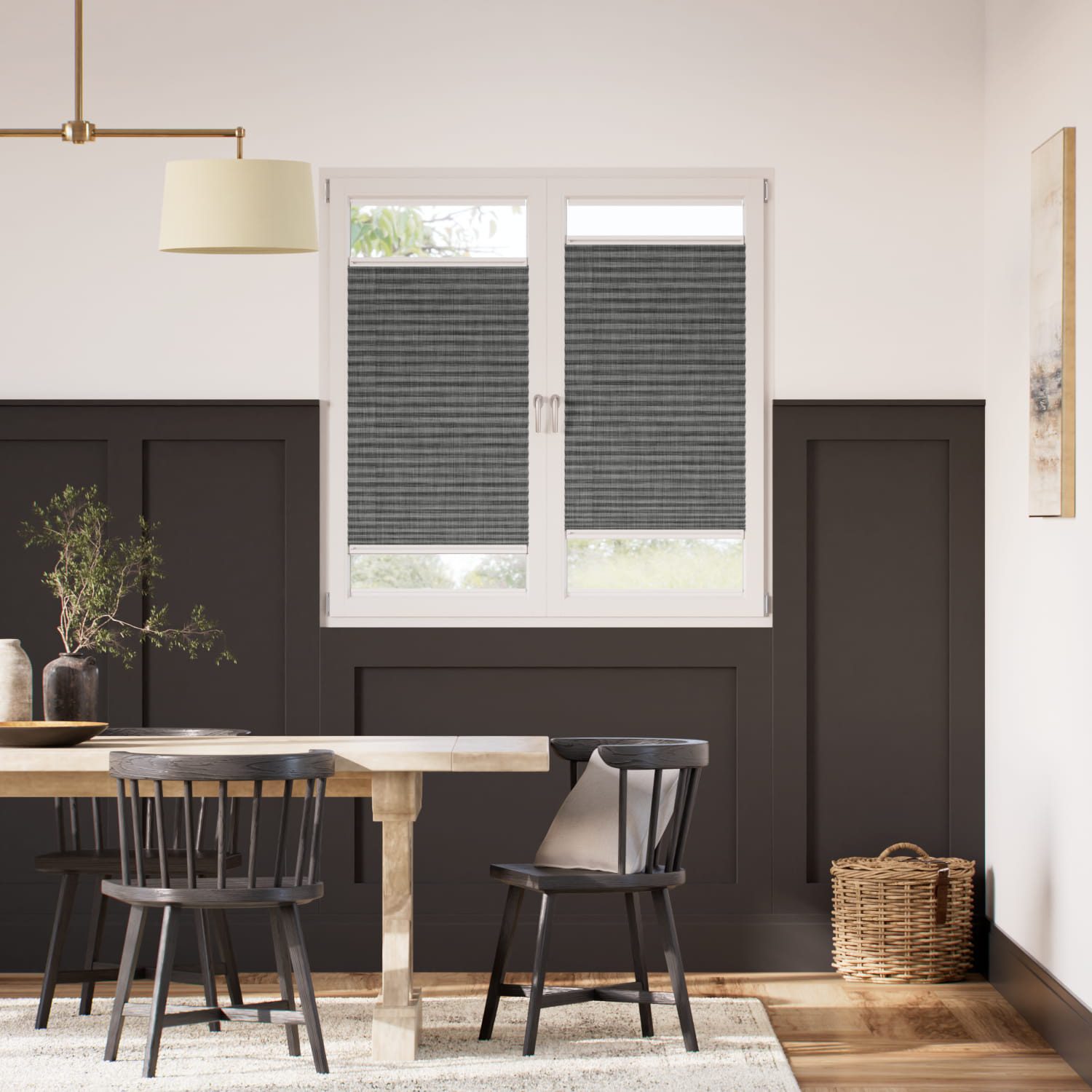 おすすめは、断熱性が高く均一に並んだプリーツデザインのハニカムシェードで、横長に伸びたラインをスタイリッシュに演出してくれます。また小さいサイズでつくりたい場合は、ロールスクリーンをご検討ください。