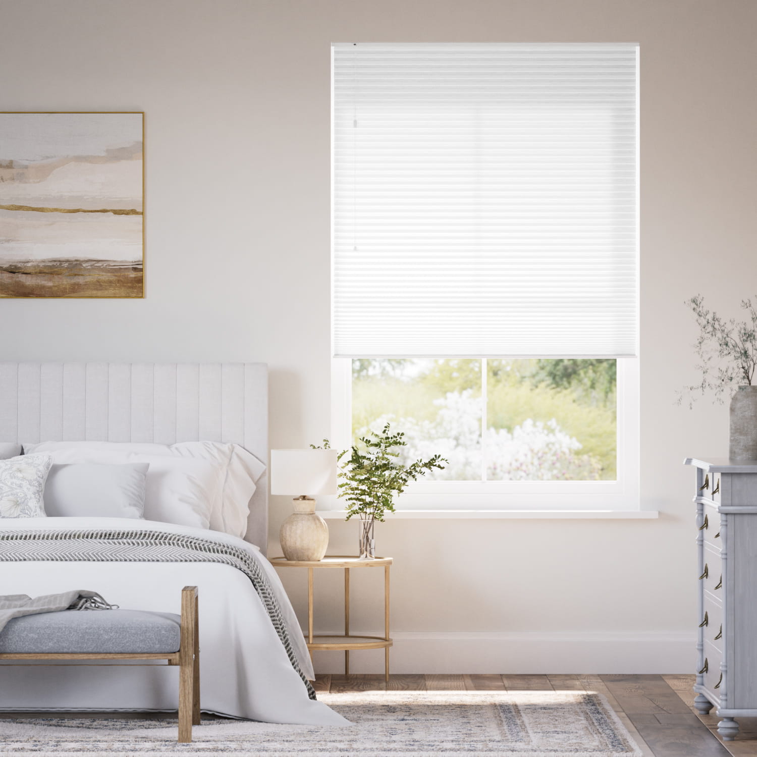 ハニカムシェードの特徴は、六角形の空気層による高い断熱性、保温性を発揮することです。小窓からの暖気や冷気の侵入を防ぎ、空調の効率を上げるので、高い省エネ効果を実現します。また均一に並んだプリーツラインは、スタイリッシュですっきりとした印象を演出してくれます。