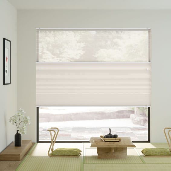 その場合は、上下どちらからでも開閉でき、採光と視界を自由に調整できるトップダウンハニカムや、上部に透けるシアー生地と下部に遮光生地を1つに組み合わせたツインハニカムがおすすめです。