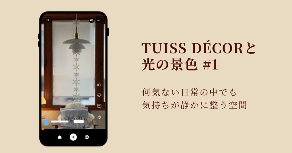 TUISS DÉCORには、2,500以上もの豊富なラインナップがあります。この連載「TUISS DÉCORと光のゆくえ」では、実際にブラインドを選んでくださったお客様が、SNSに投稿してくださったお部屋のスタイリングをご紹介していきます。