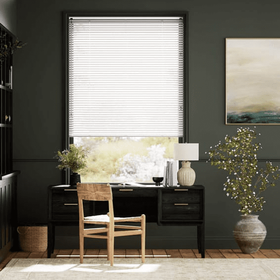アルミブラインドは、横に並んだ直線的なスラット(羽根)によってモダンでスタイリッシュな印象になるのが特徴です。カラーはニュートラルなものからパステル調の明るくポップな色味までお好みに合わせて選ぶことができます。アルミブラインドは、水平に並んだスリムなスラット(羽根)を傾けることで、光の量や外からの視線を細かくコントロールすることができます。